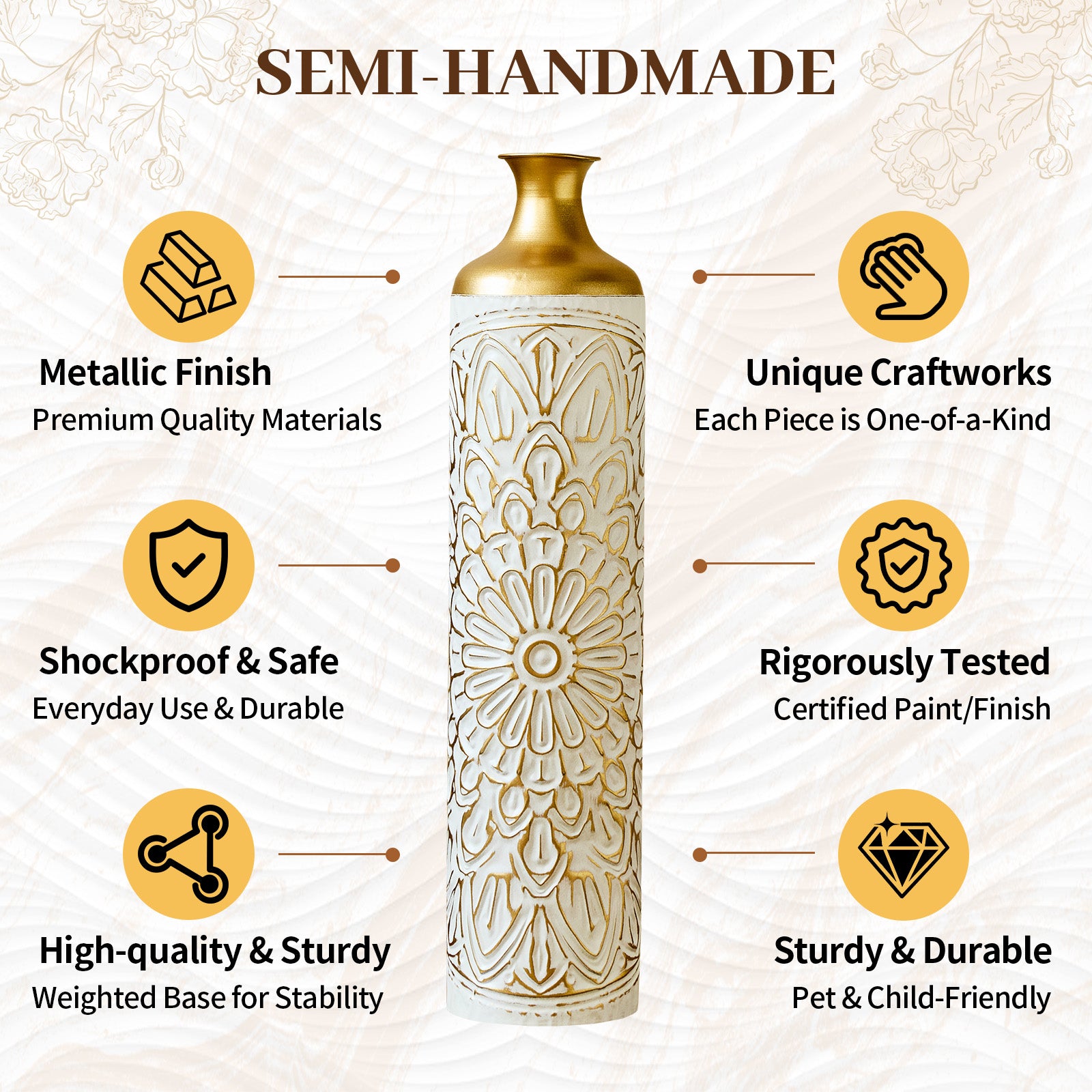 - Versatile Display Piece – Ideal for entryways, living rooms, or as a centerpiece, these tall metal vases complement a variety of interior styles from glam to modern chic.
