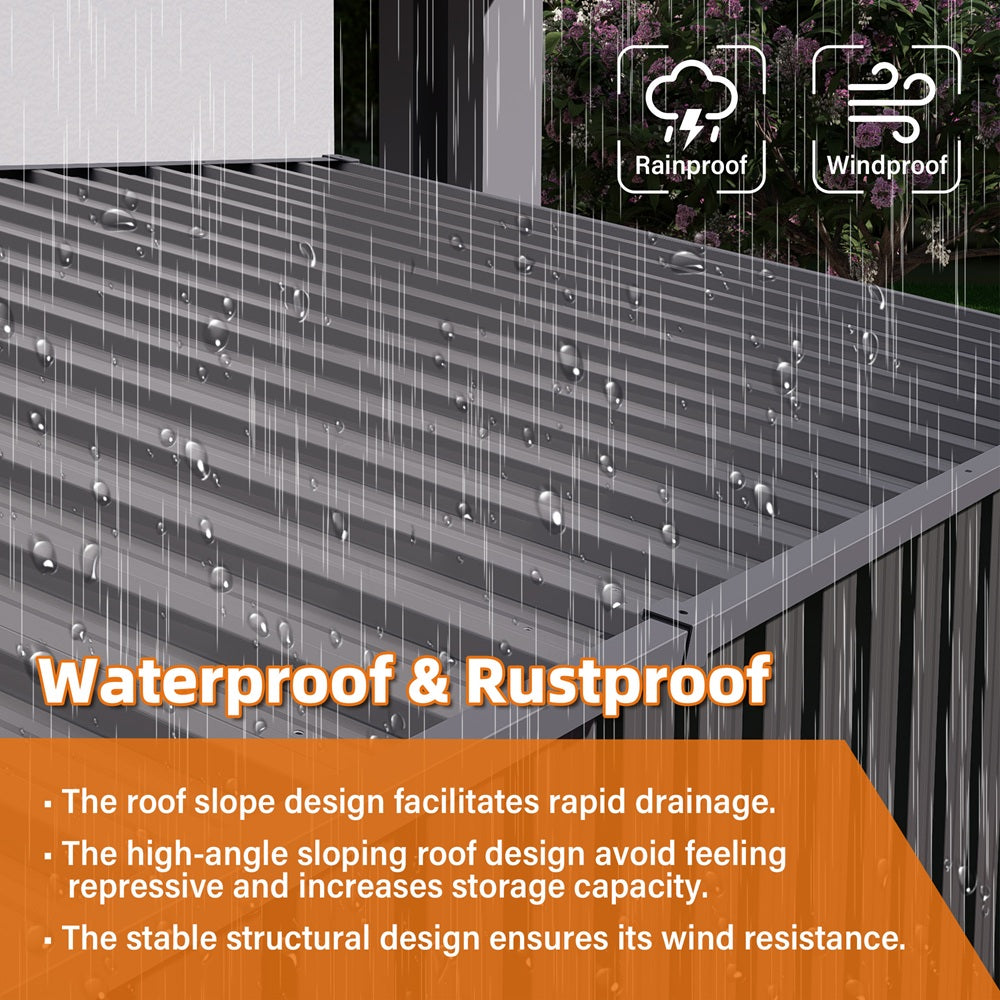 4 x 9 FT Outdoor Storage Shed, Metal Garden Shed Tool House with Sloping Roof,6 vents and 2 Swing Doors for Backyard, Garden,Patio, Garage, Lawn, Gray