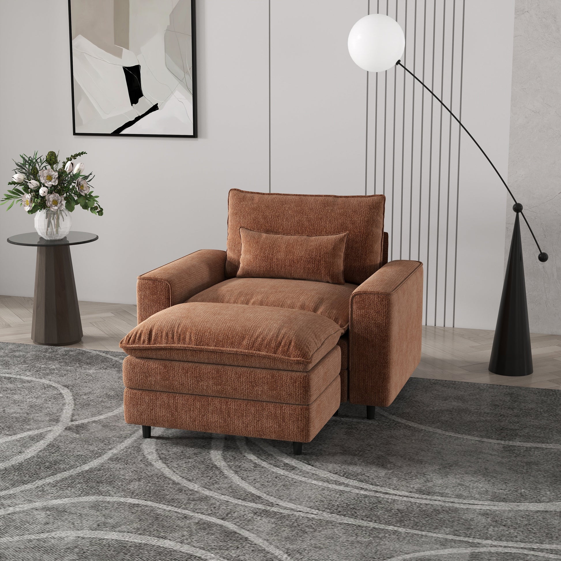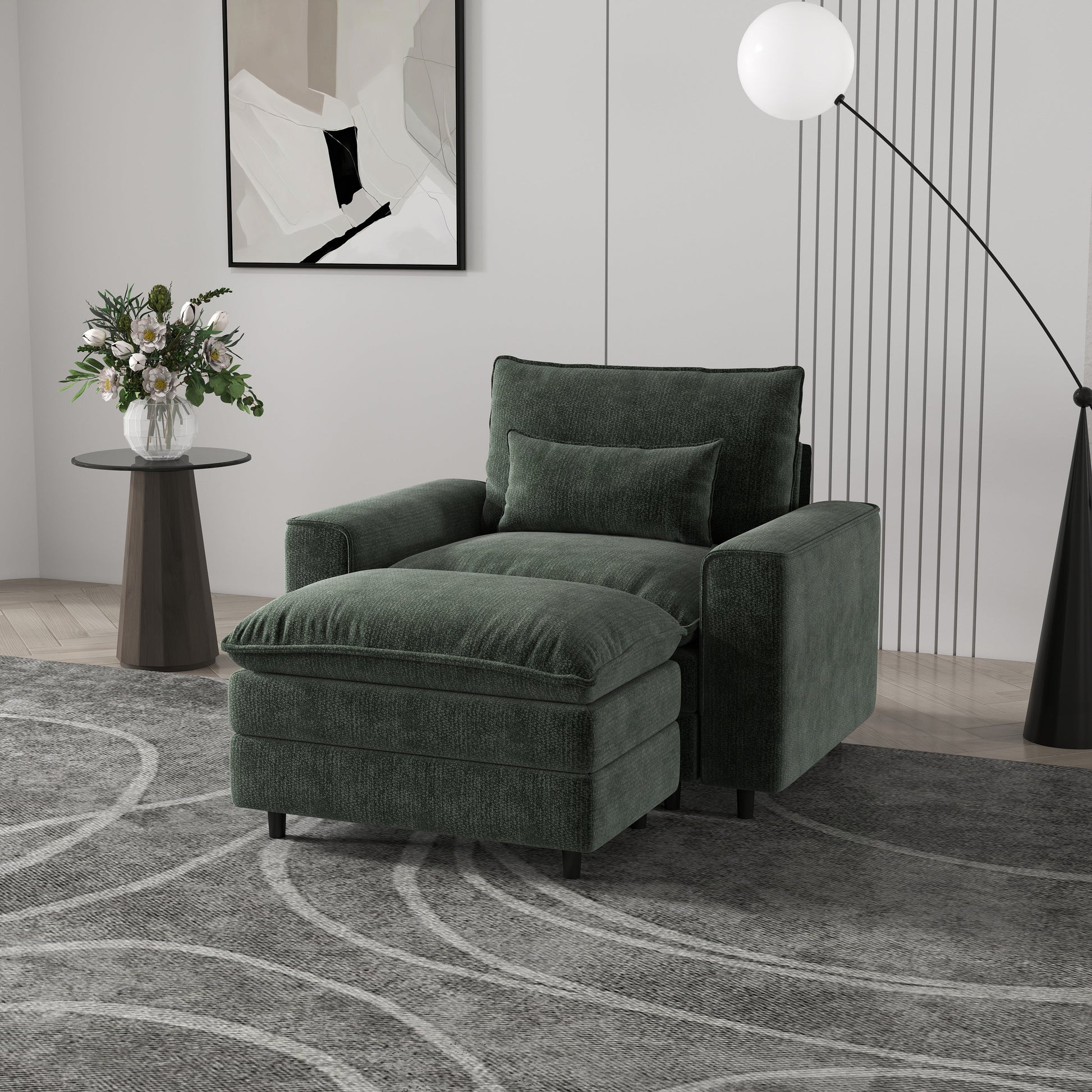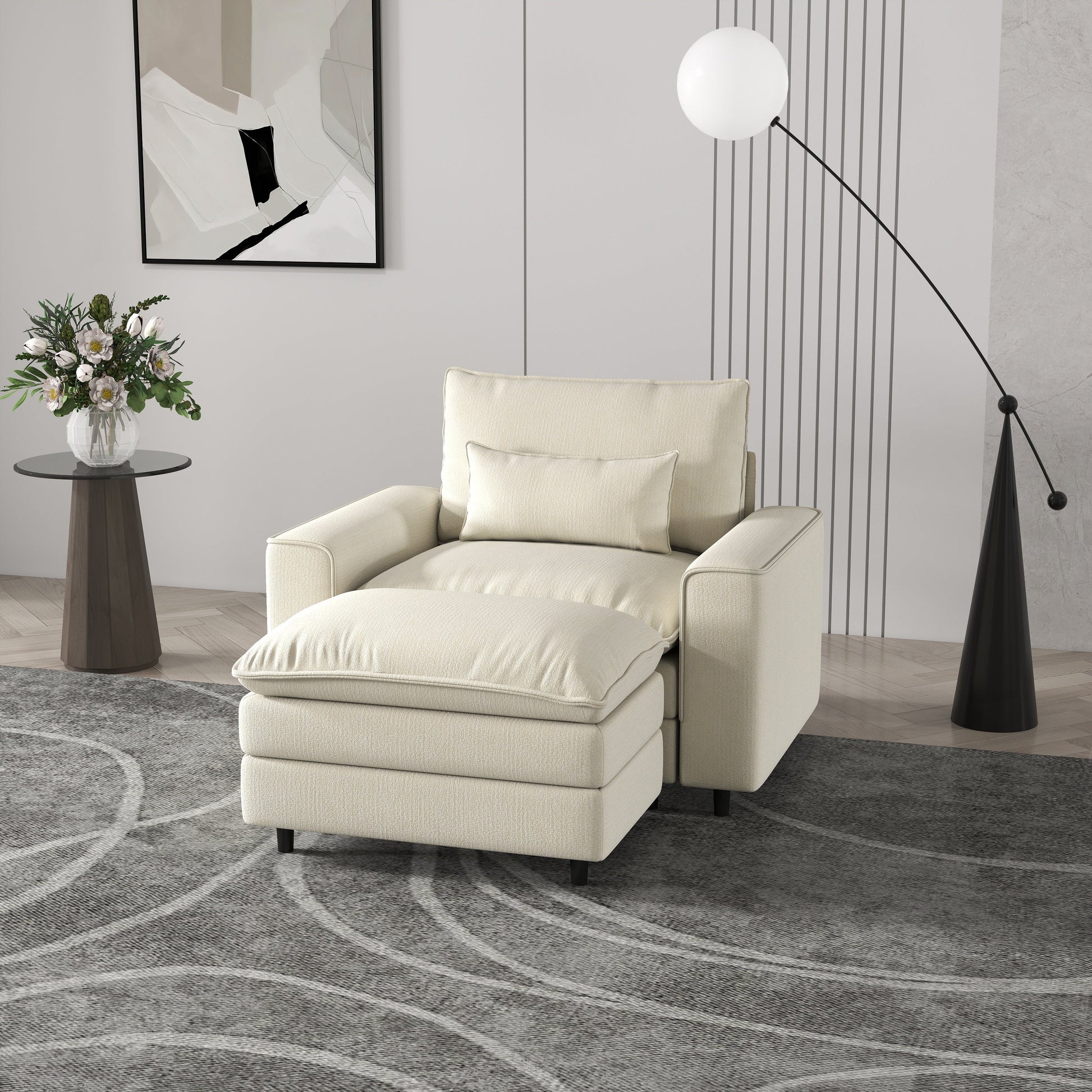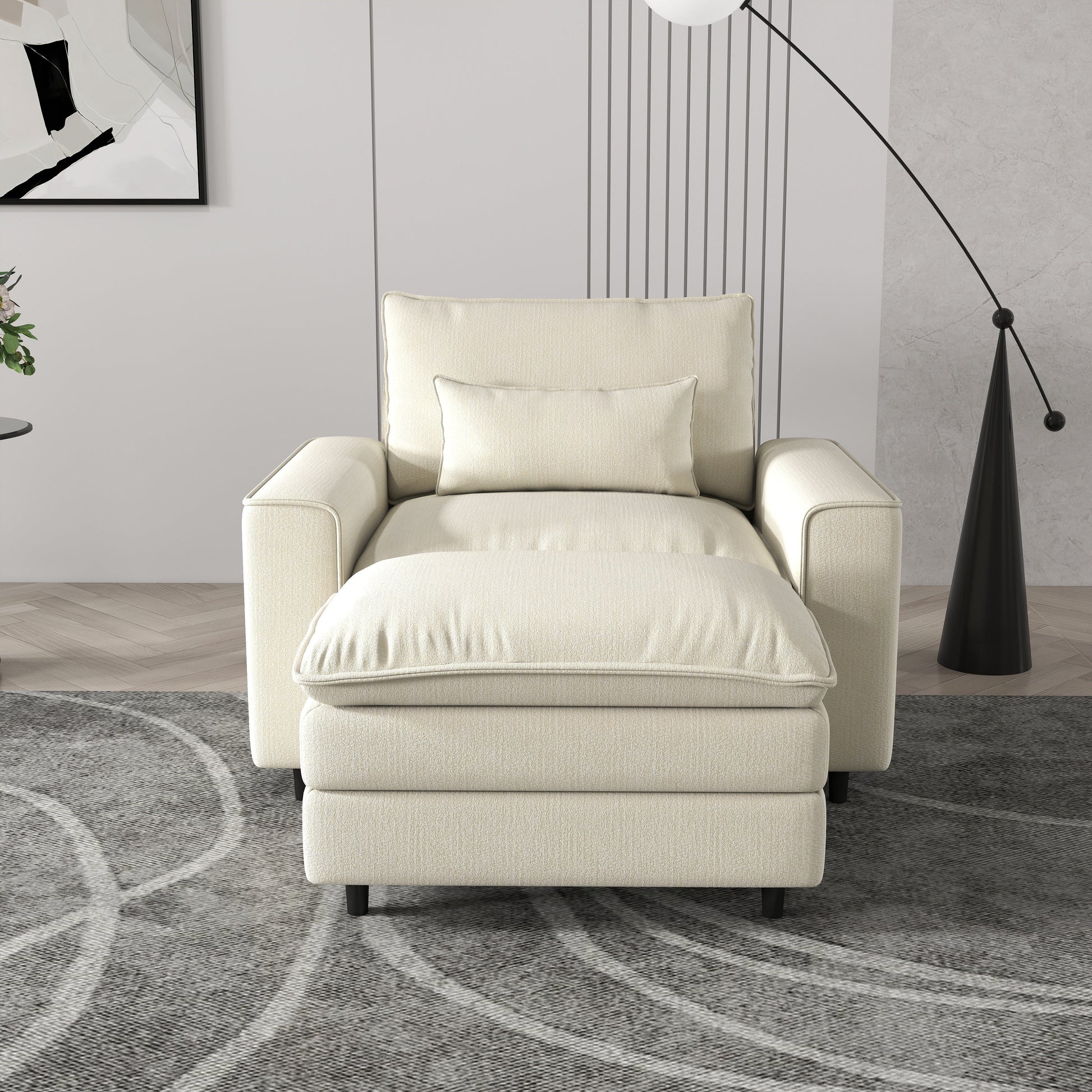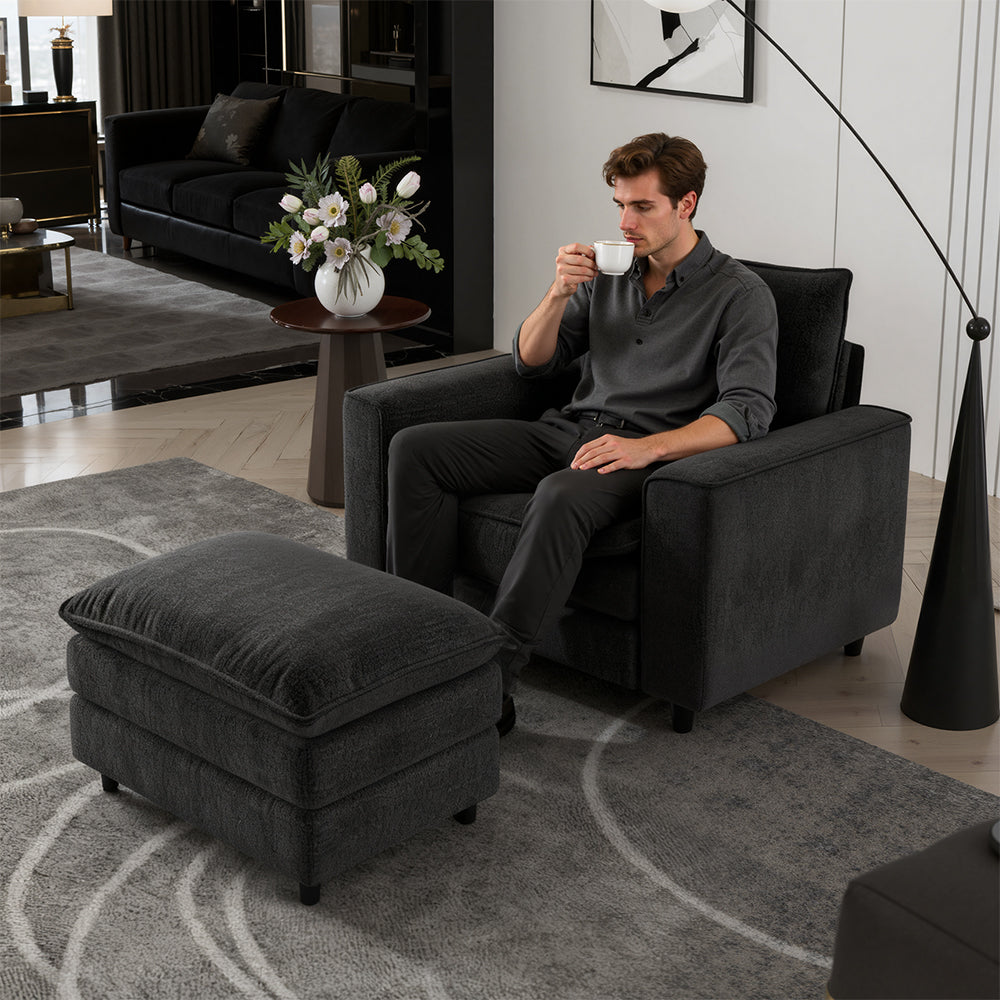 Comfort Combo: Single Sofa and Portable Footstool