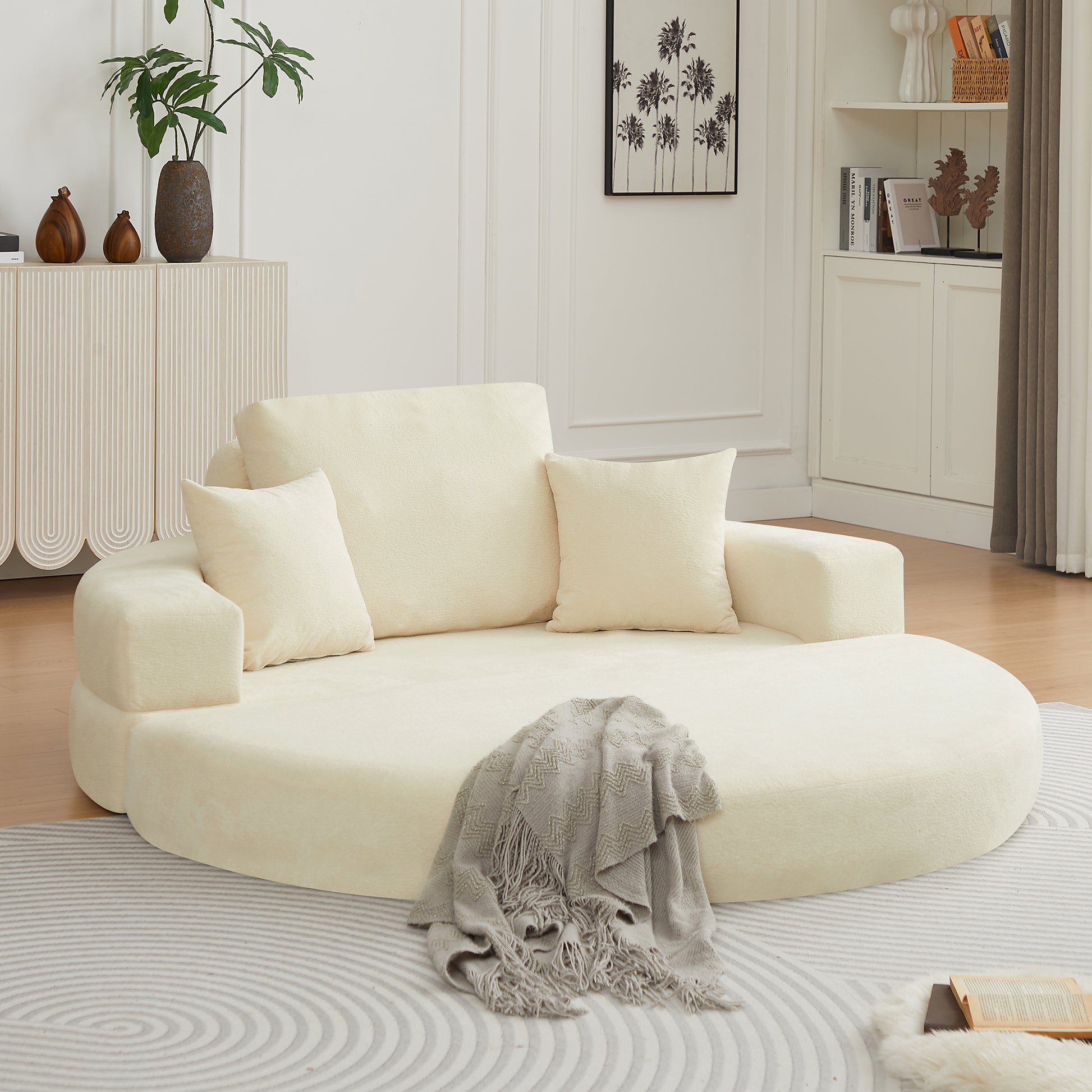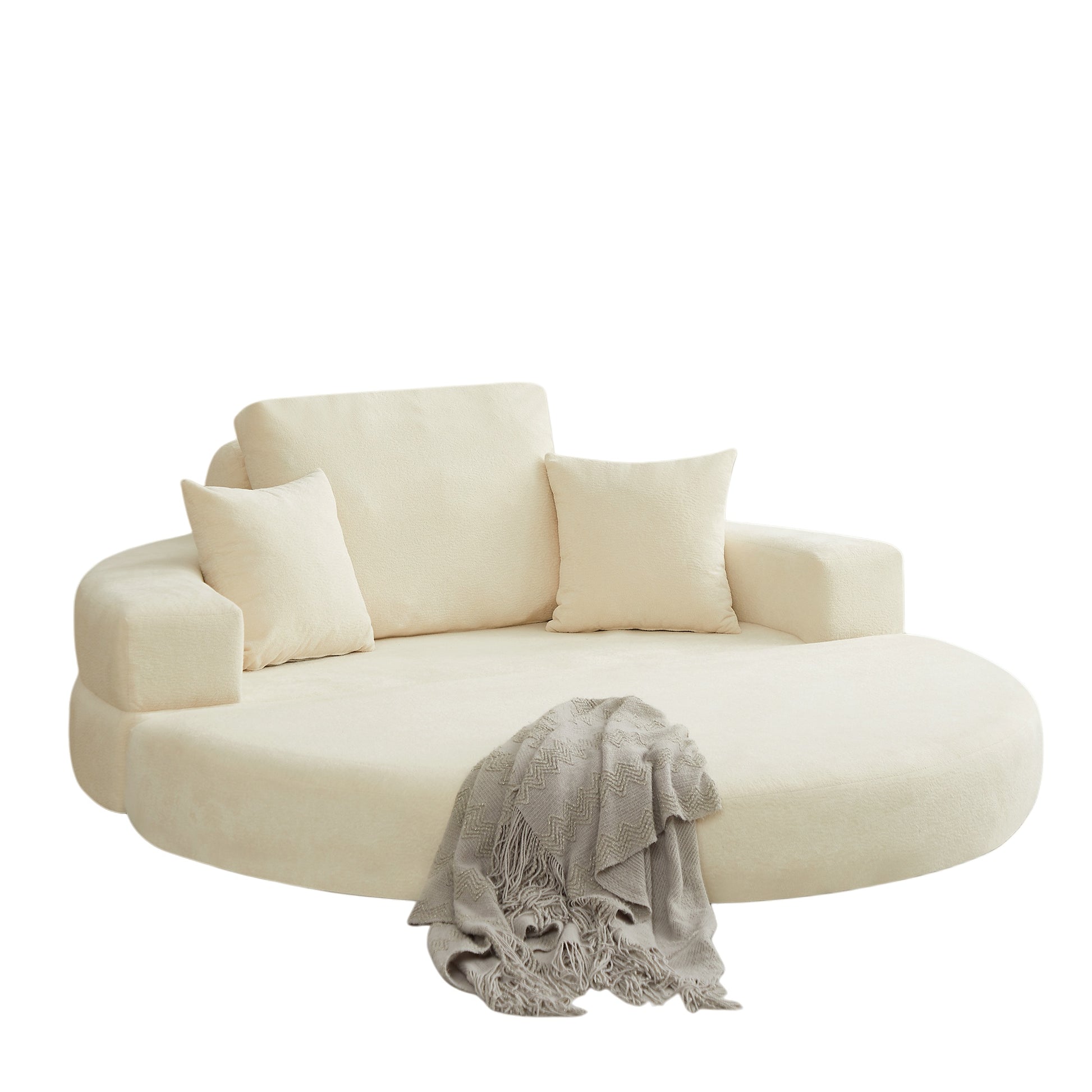 Sink in and stay a while. The Mochi's oversized round silhouette invites you to lounge, recline, or sleep — transitioning effortlessly between all three. Soft circle velvet fabric and generous pillow support make it a statement piece that's just as practical as it is beautiful.