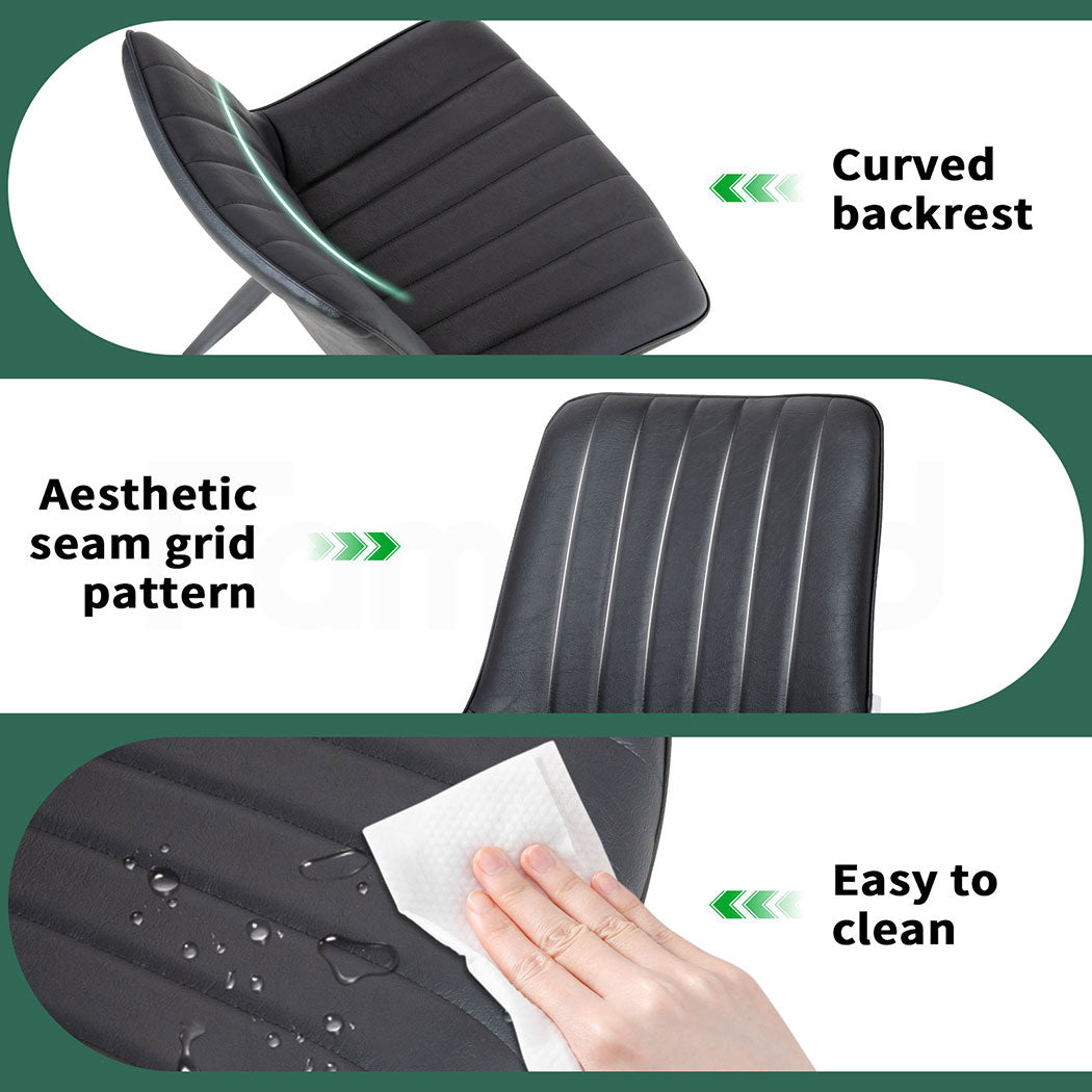 Familand 2x Dining Chairs Faux Leather Upholstered Kitchen Living Room Chair Metal Black