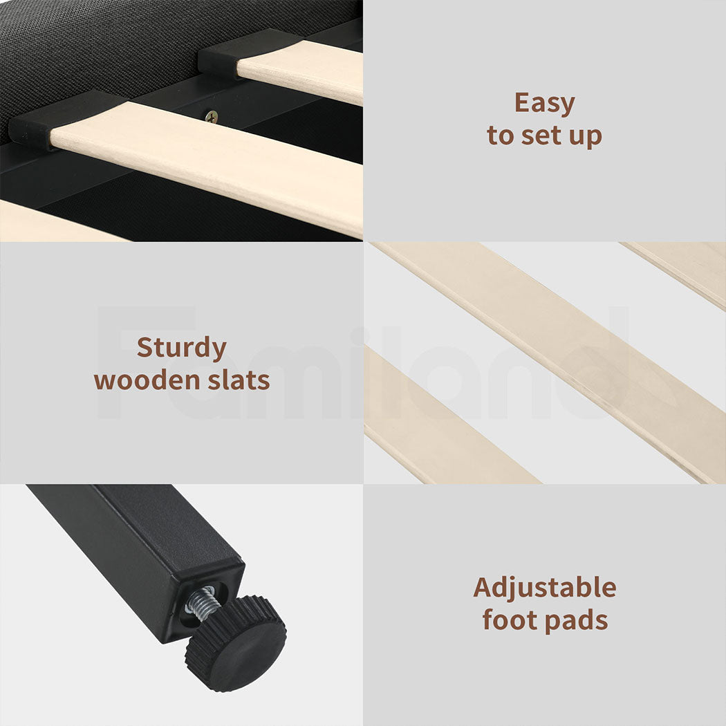 With a practical 6.5-inch under-bed clearance, it offers ample storage space for organizing bedroom essentials while allowing easy access for vacuuming and cleaning. Embrace the perfect combination of style, comfort, and durability with the Familand Queen Size Bed Frame—your ultimate sleep sanctuary.