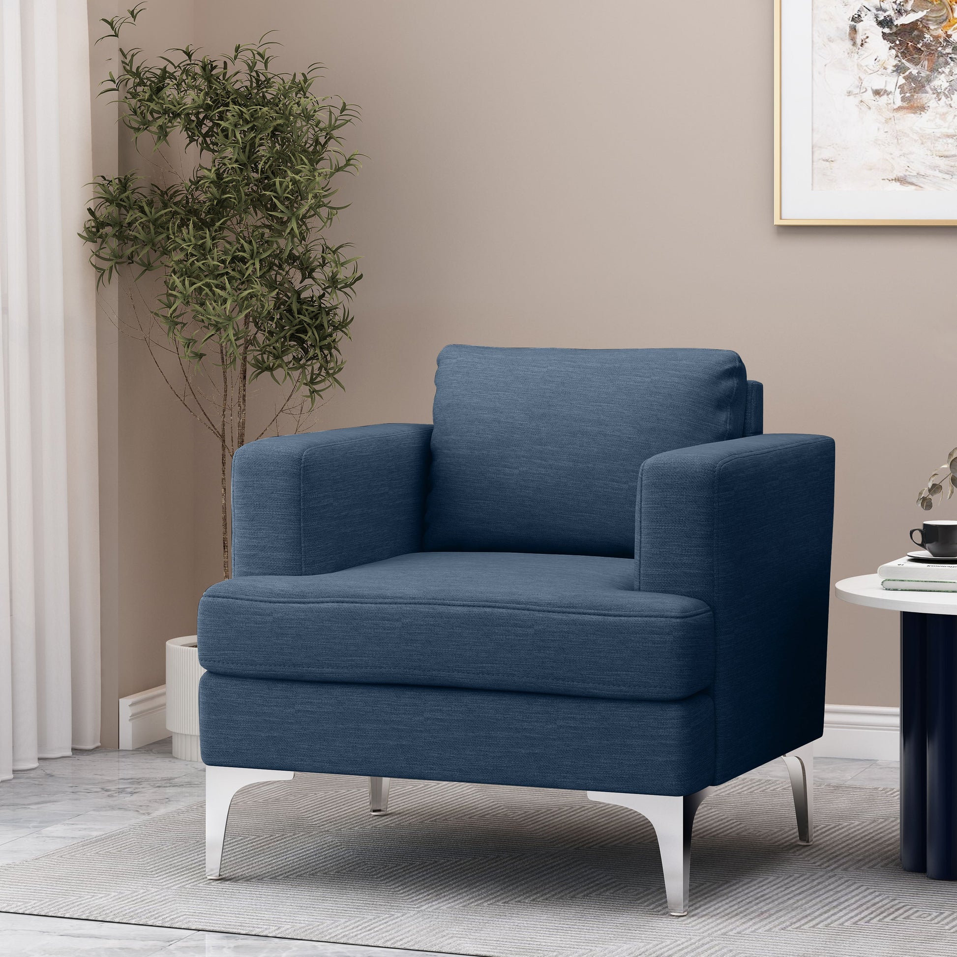 Sleek lines, smooth upholstery, and minimalist bracket legs define this contemporary club chair, blending style with structural integrity.