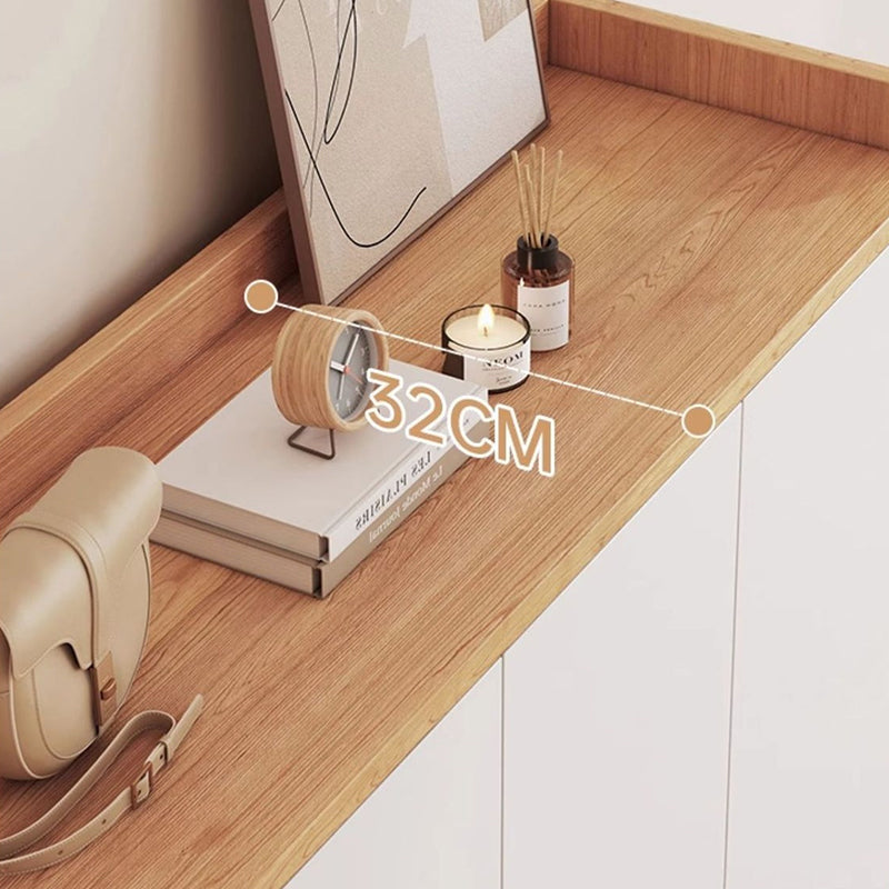 Keep your entryway neat and stylish with this **modern wooden shoe cabinet**. Designed with a combination of closed cabinets, a top drawer, and an open bottom shelf, it provides versatile storage for shoes, accessories, and everyday essentials. The **elevated legs** ensure stability and make cleaning underneath easy, while the slim profile fits perfectly in hallways, foyers, or small apartments. With its **natural wood grain frame and minimalist white doors**, this cabinet adds a warm yet contemporary touch to any home.