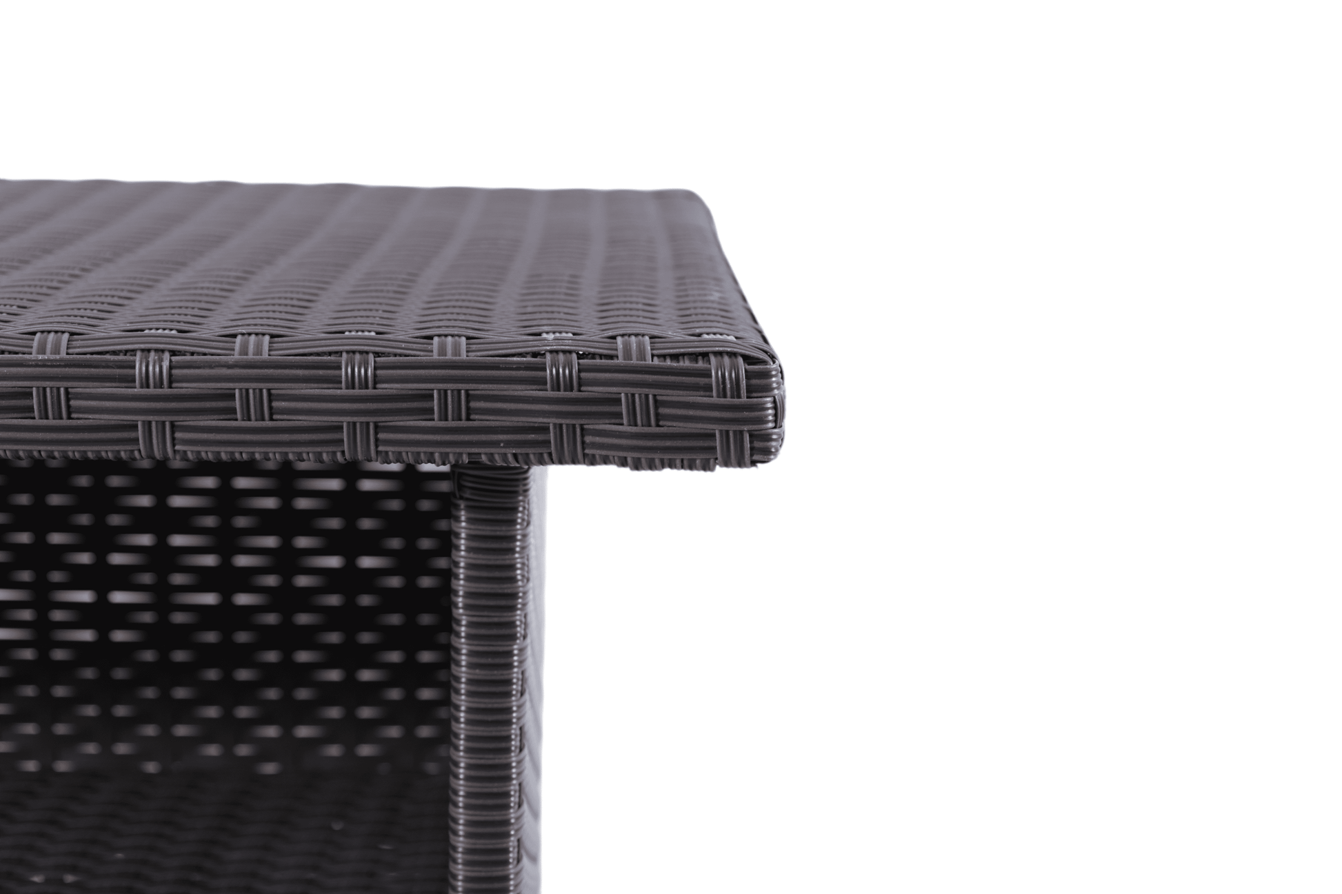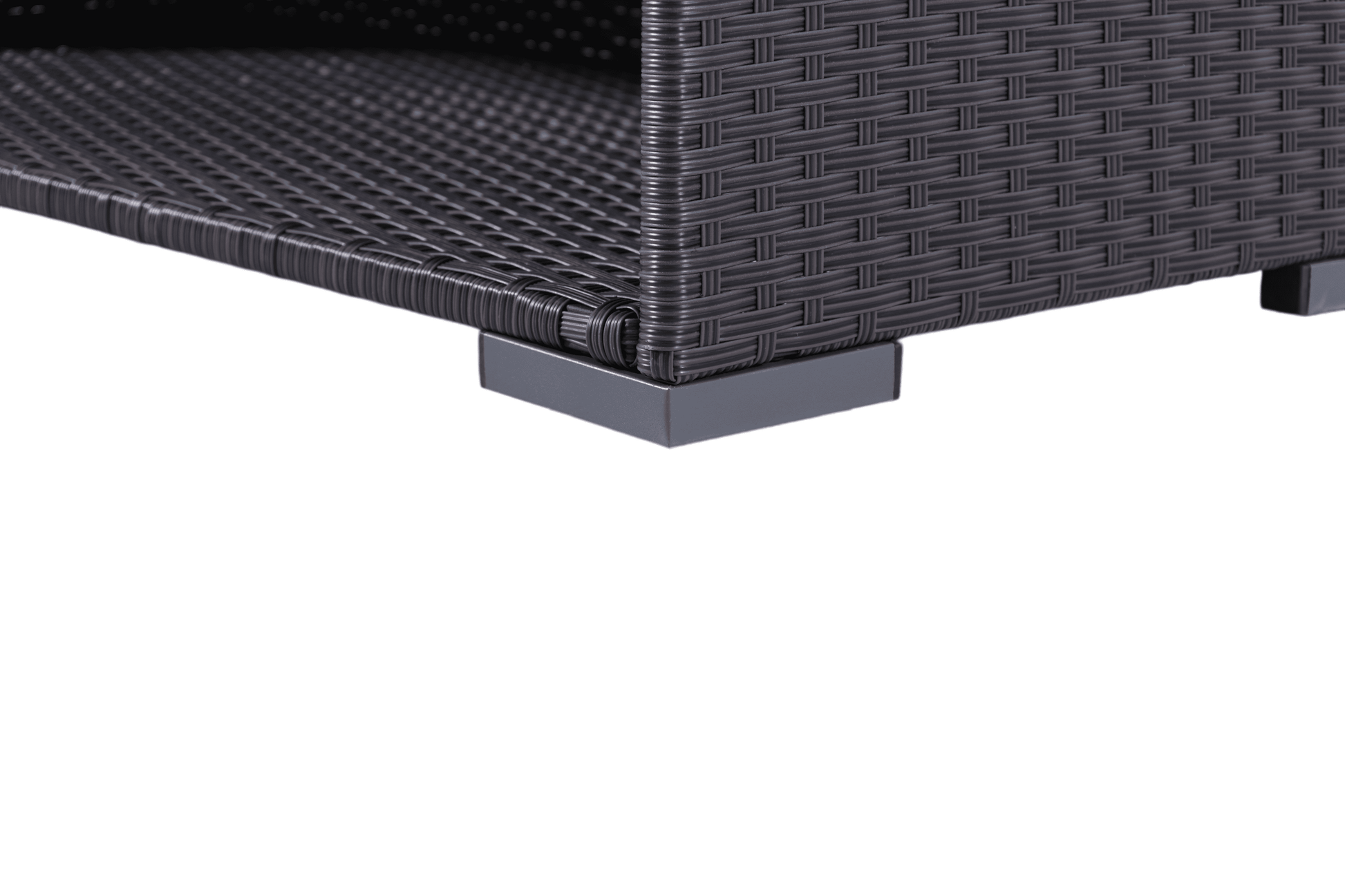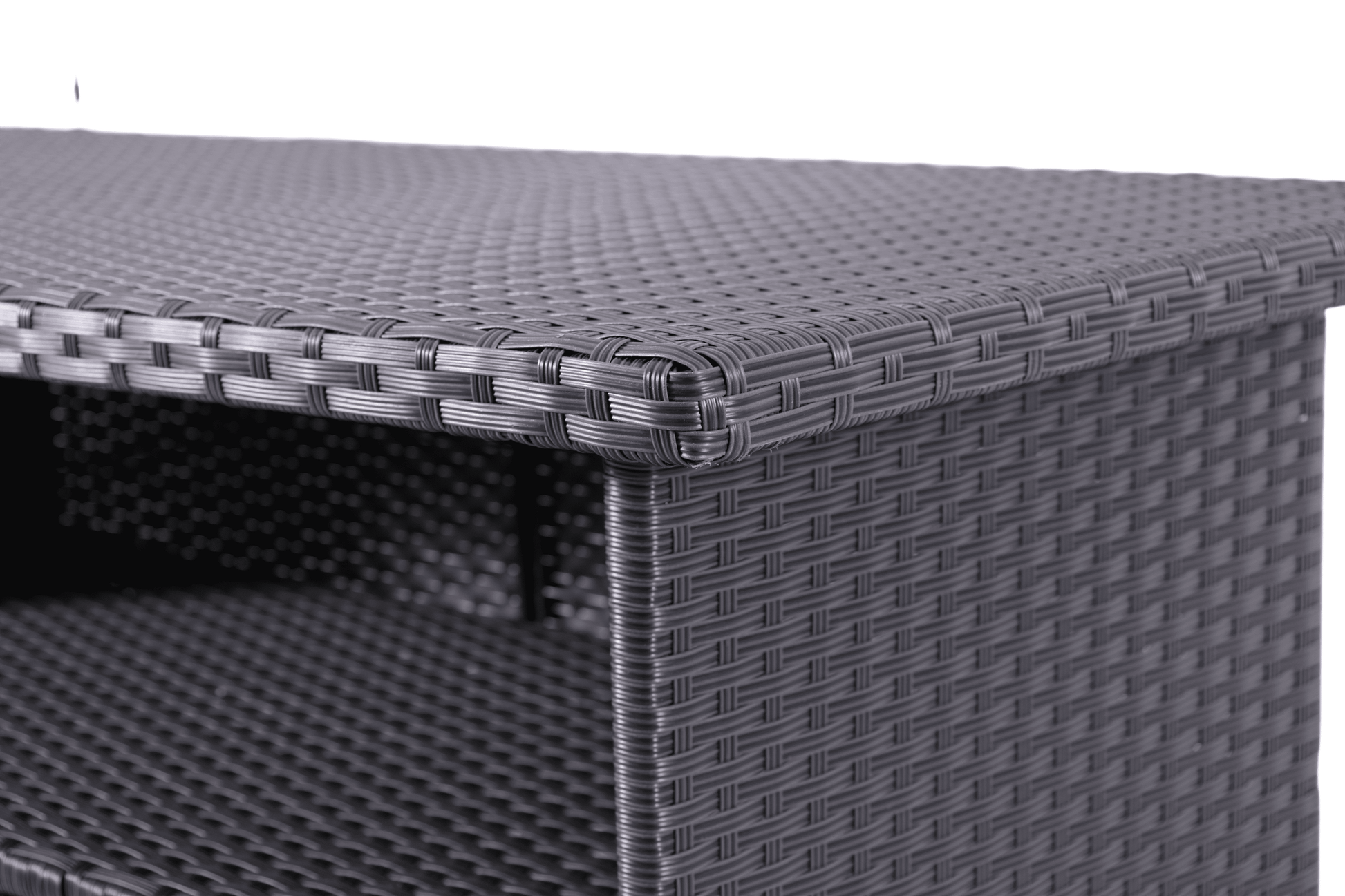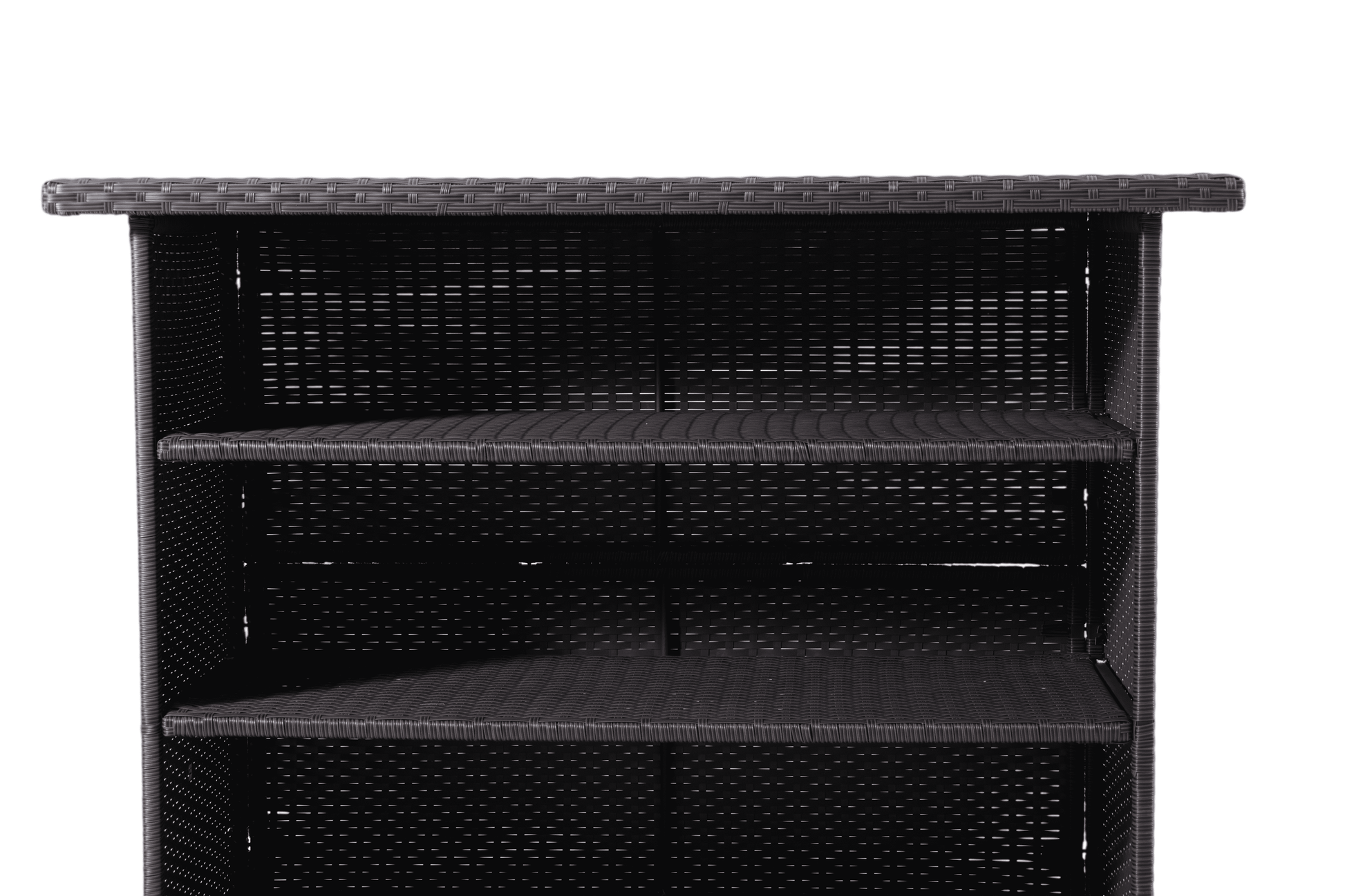 ● Sleek Woven Shelf Design——Textured woven surfaces and open-shelf layout deliver a modern, functional look for indoor or covered outdoor spaces.