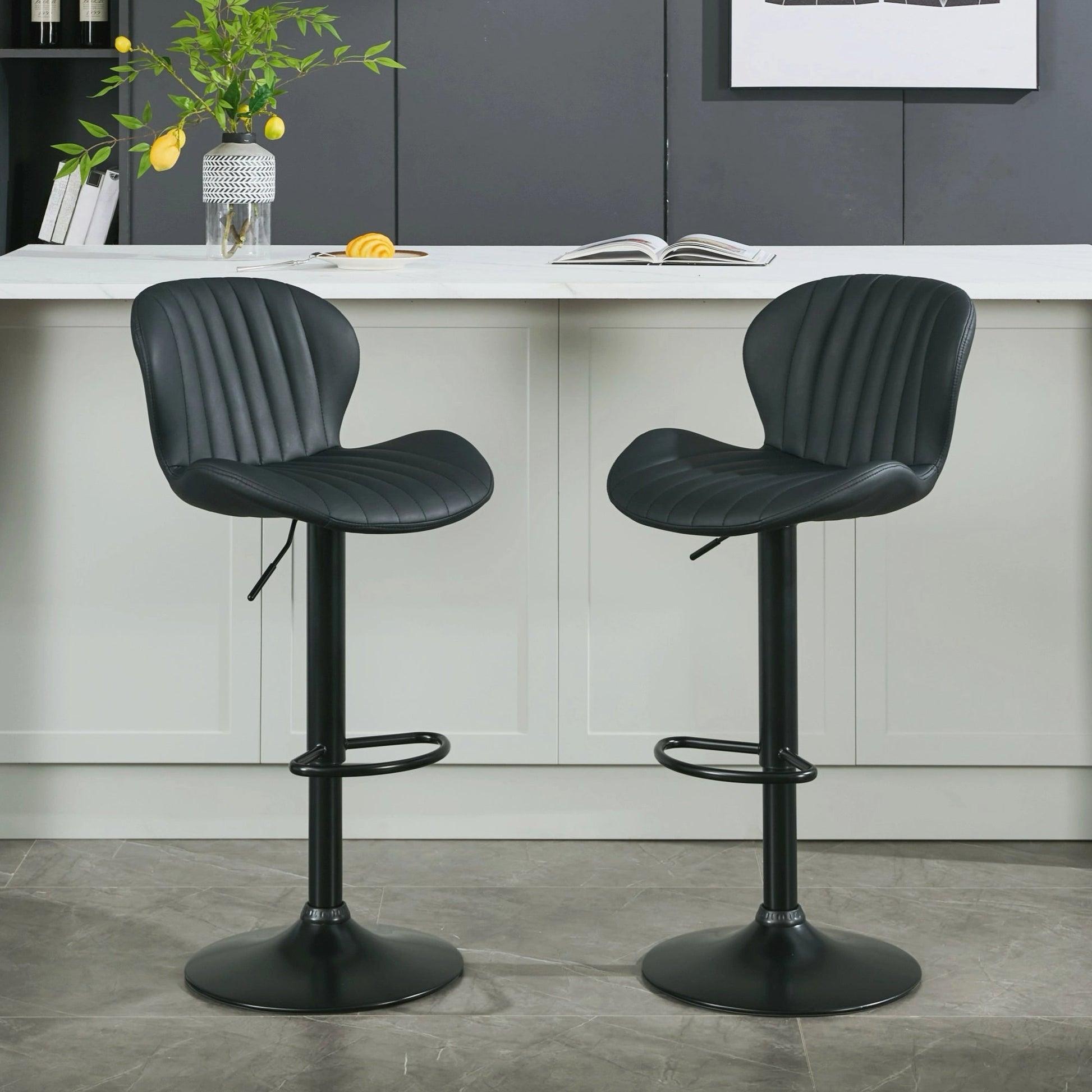 The stylish trapezoidal backrest and shell shape stitching design seamlessly blend modern aesthetics, instantly elevating your space's style. The hydraulic lift allows for easy height adjustment to accommodate various tabletops, while the 360-degree swivel feature lets you effortlessly face any direction. The metal footrest provides comfortable support for your legs, allowing you to fully enjoy your leisure time. This stool is undoubtedly an essential stylish item!
