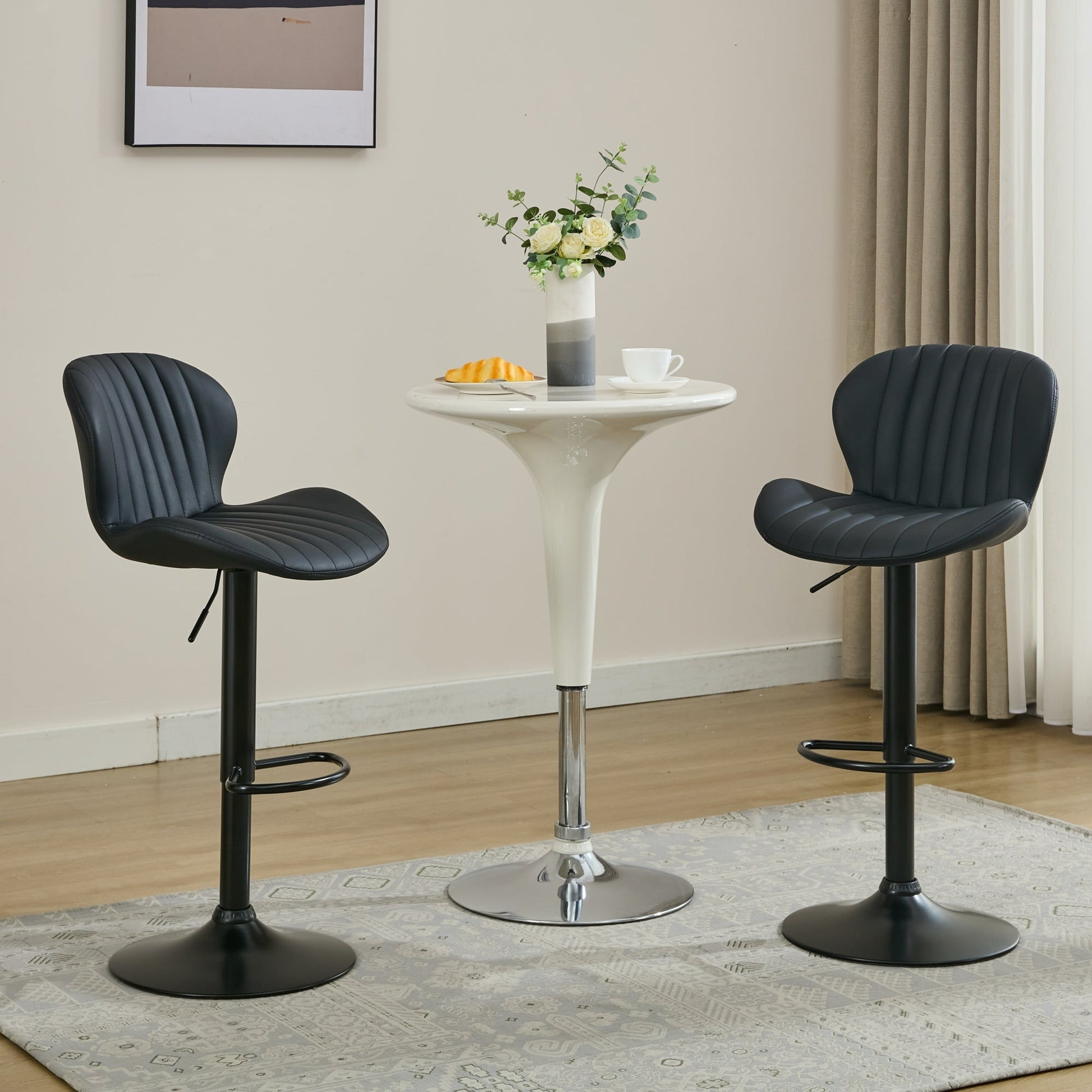 Set of 2 Modern Faux Leather Swivel Bar Stools