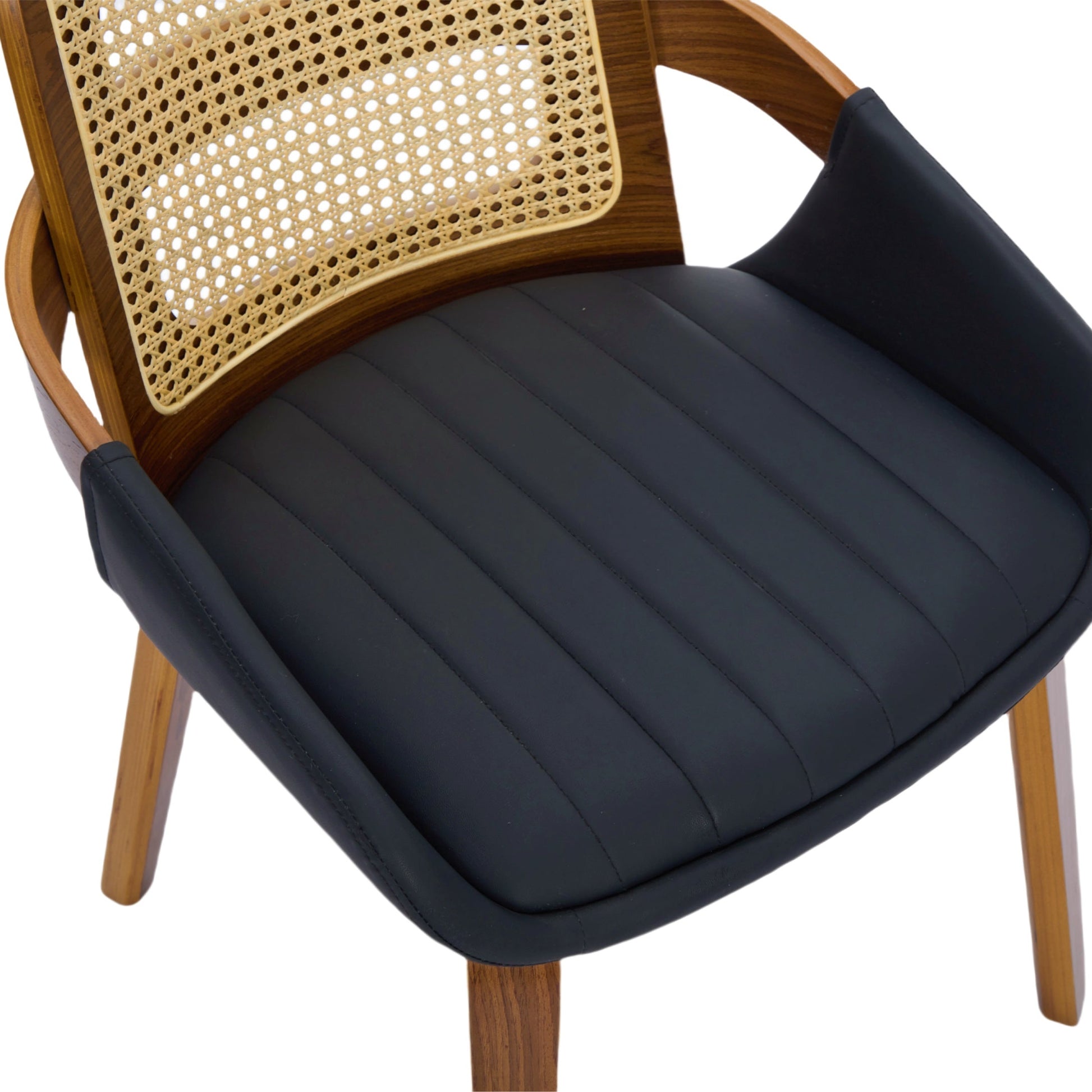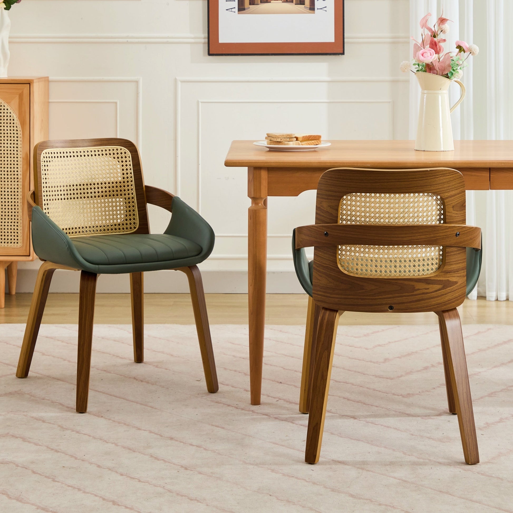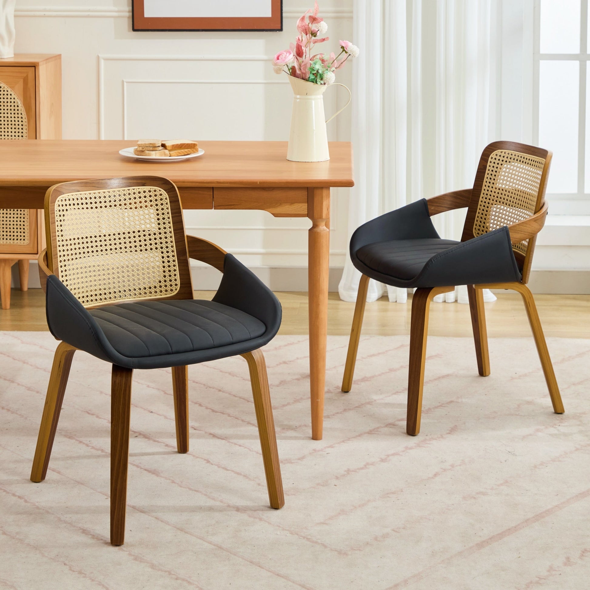 Set of 2 Rattan Dining Chairs - Mid Century Modern Dining Chairs with Walnut Bentwood Frame